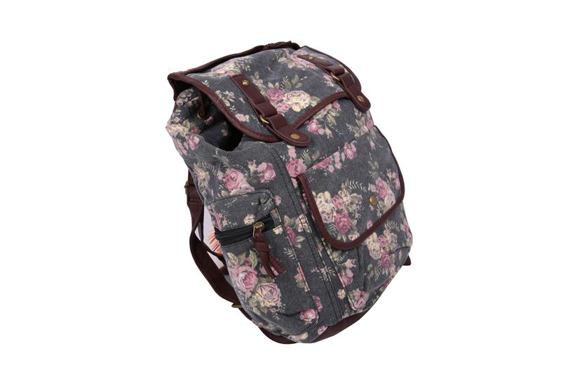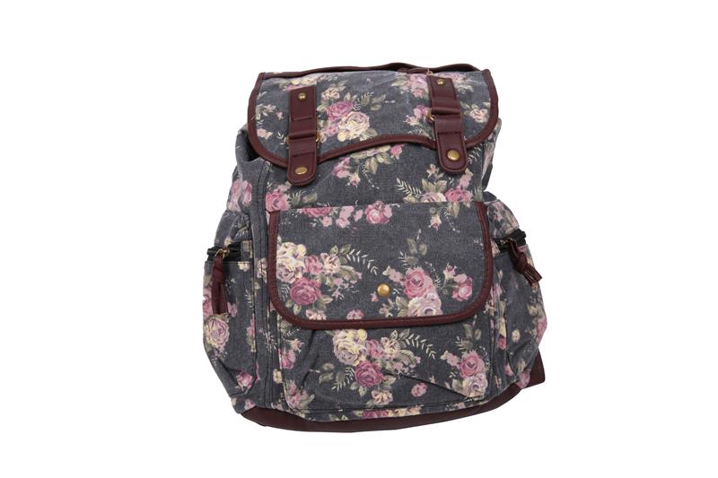 Canvas Cargo With Faux Leather Trim Backpack Handbag