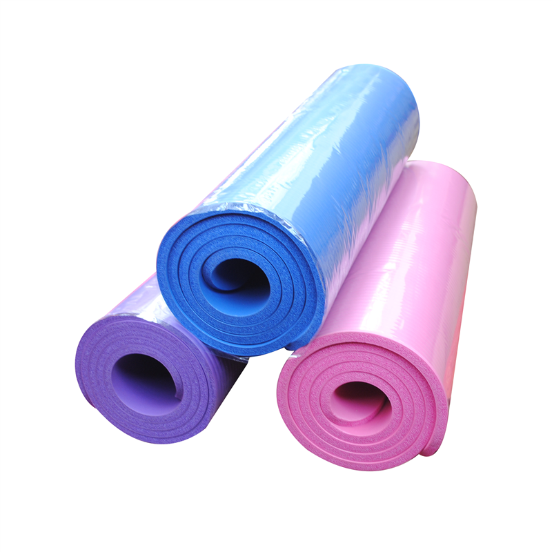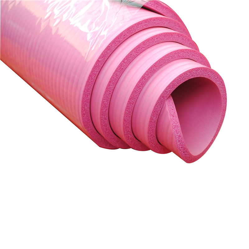 The yoga mat is made of environmental NBR. It's beneficial for exercise. Logo can be imprinted on it.