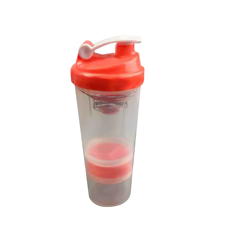 This bottle is made of plastic with 3 layers. It's 500ml and used for mixing up quickly by shaking. It's convenient and practical for you to take it anywhere.