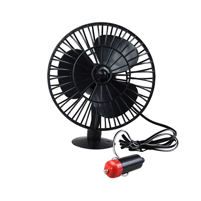 This mini fan is made os ABS, size 4" dia. There is a sucker at the bottom, so you can put it in your car to get cool wind when connecting the cigar lighter. It is an essential item for summer-time.