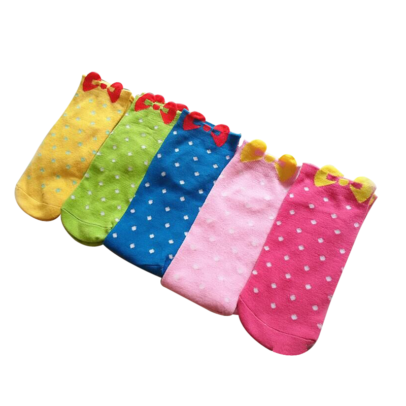 Lovely and flower spot socks with a butterfly design on top. It is comfortable to wear and various colors can be selected. Handtag sticker can be customized.