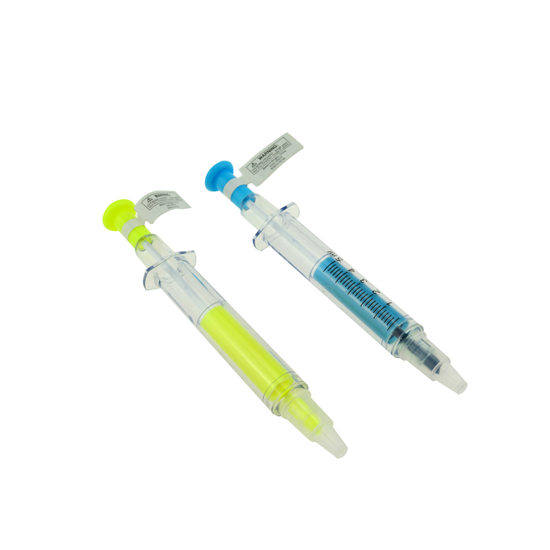 This injector-shaped highlighter made of ABS, with point pen and highlighter .Better for promotion.