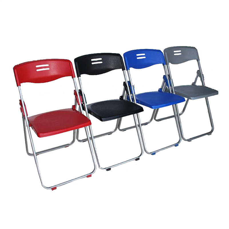 This chair is made of stainless steel pipe and PP. It is very portable and convenient for your conference and trainning time. You can also fold it up when you do not use it.