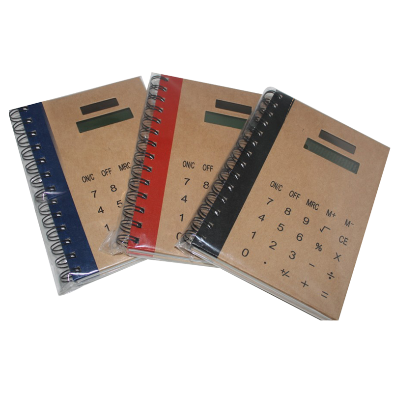 It is a new style notebook. A calculator is in it. It is a solar calculator. You can write articles and calculate data by using it. Logo can be imprinted on it.