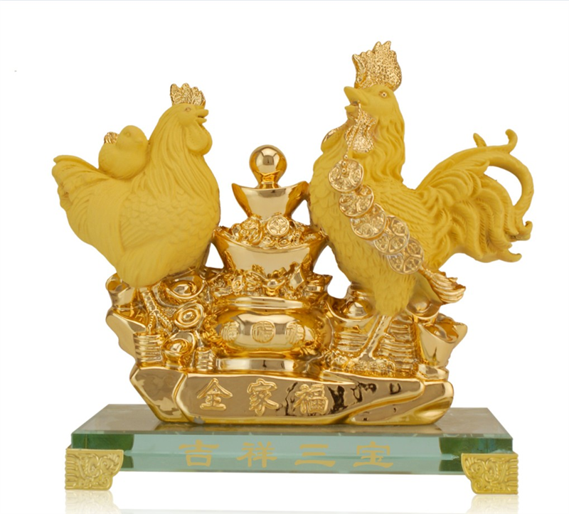 Satin golden Rooster in geomantic omen is always used in home or company. The location of the decoration is according to person's Chinese zodiac sign. You can display the item in your bedroom. The golden rooster is made of resin. It will bring luck to you.