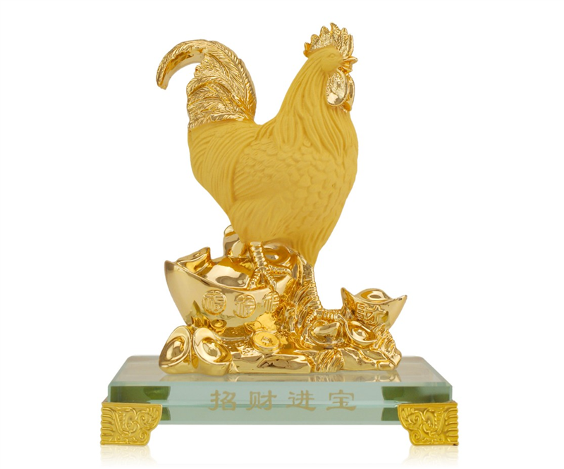 Satin golden Rooster in geomantic omen is always used in home or company. The location of the decoration is according to person's Chinese zodiac sign. You can display the item in your bedroom. The golden rooster is made of resin. It will bring luck to you.