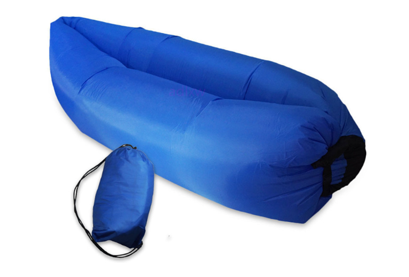This lazy inflatable sofa is made of polyester fabric. It can be used not only on the smooth ground but also on rougher surfaces such as those with (small) rocks, or hard pavement. It is fast to inflate and deflate, filling up with air similar to the wind catcher. It can weight up to 400 pounds. It is also great for those long hiking trips, hanging out at the beach or the park, sunbathing in your backyard or at your favorite outdoor festival. Besides, it is easy to be packed into a compact bag when not in use.Customized imprint and color are available.