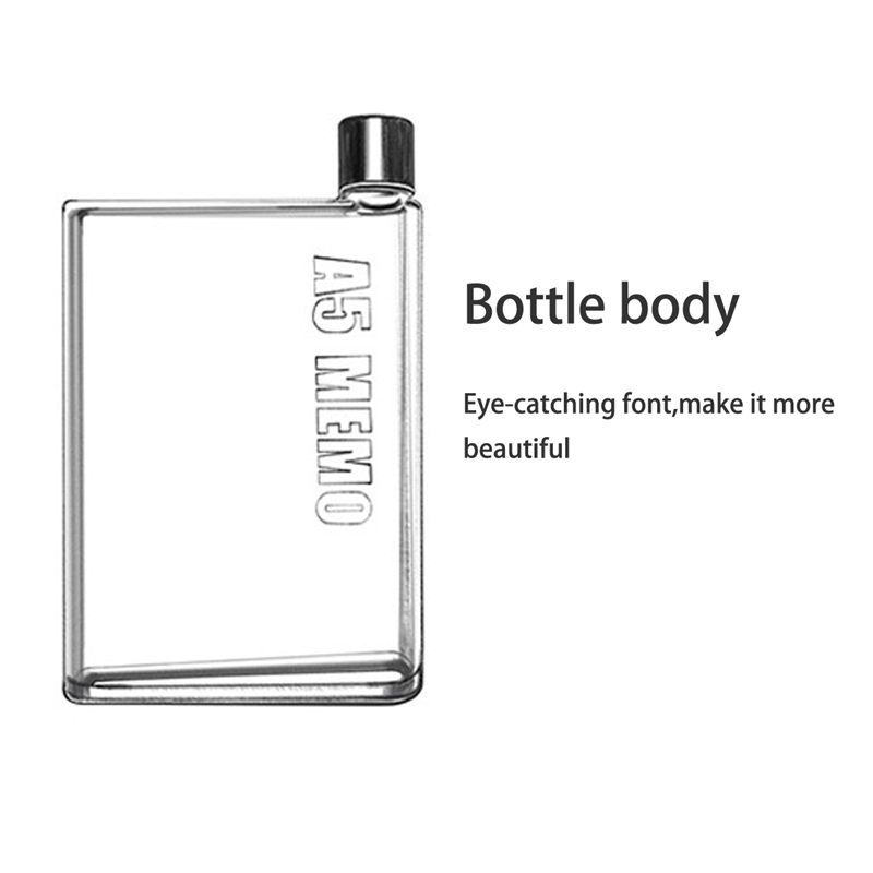 This is made of AS+PP material, bottle is designed for everyday carrying in briefcase, going to office or out for a picnic, etc. It is shaped like a book and easy to carry. The bottle is transparent and smoothy and you can feel the texture of water,the capacity about 15OZ.