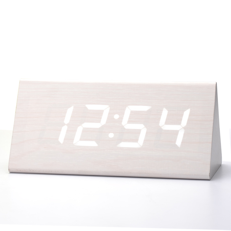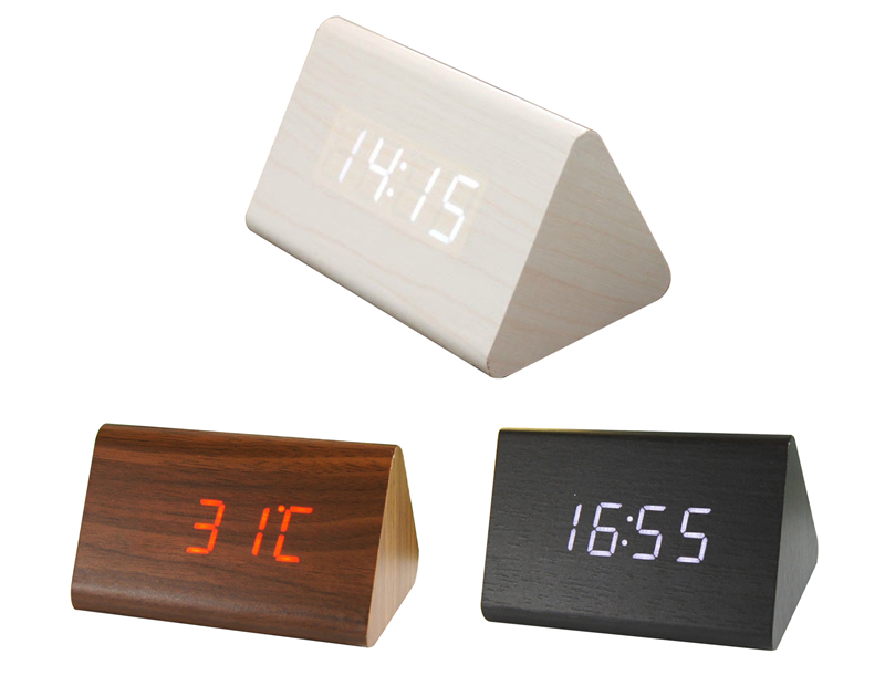 It is made of bamboo, with LED digital alarm clock, voice control. When in darkness, it turns into night mode.Time and temperature displayed at the same time. Listed prices are for white LED numbers. Those numbers could be red, blue, green or white. Logo could be printed above or below the numbers.