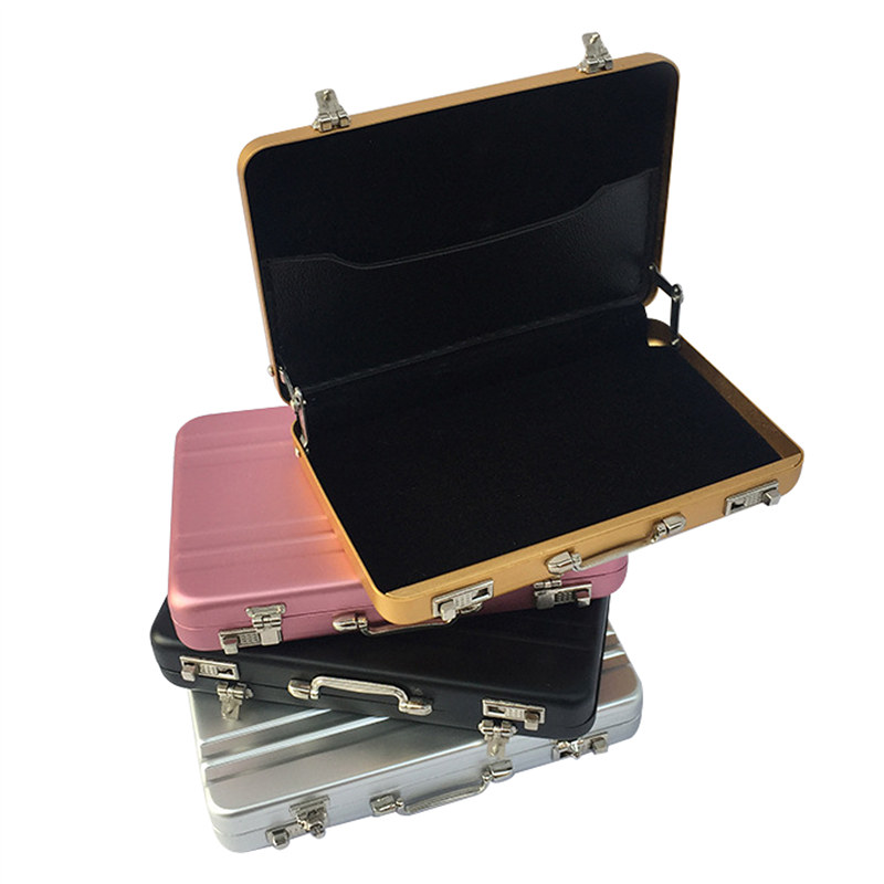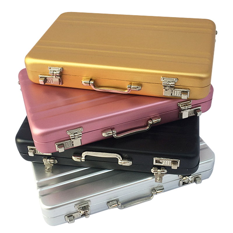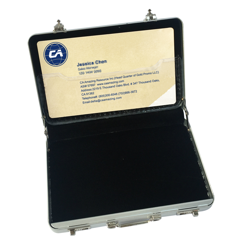This card holder is made of aluminum. It looks like a luggage. 30 pieces of cards can be put in it. Here are four colors for you to choose. Logo can be imprinted on the surface.