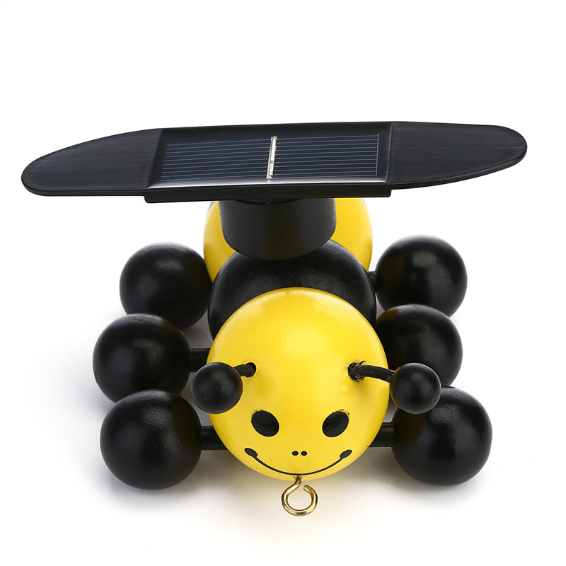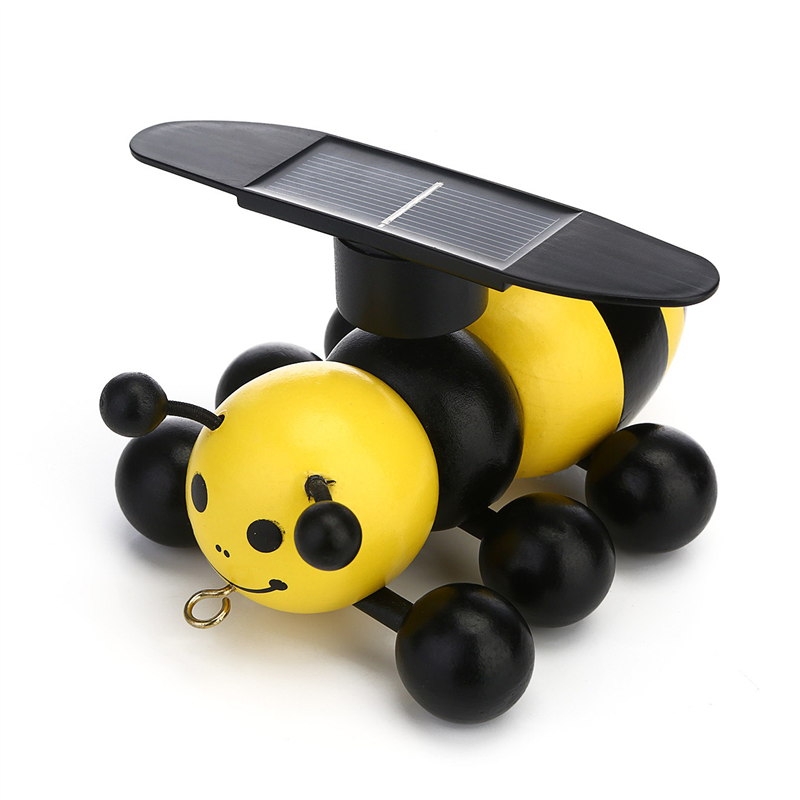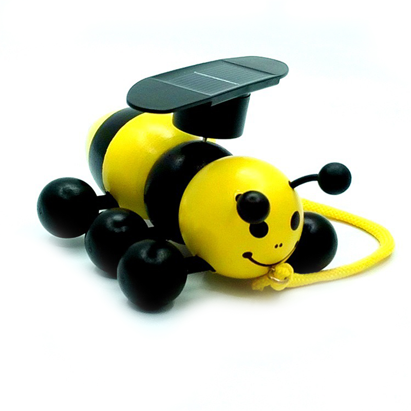 This toy bee is made of wood, it uses solar to move. It is suitable for children. It doesn't need battery. Logo can be imprinted on it.