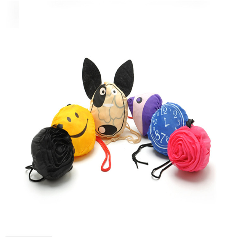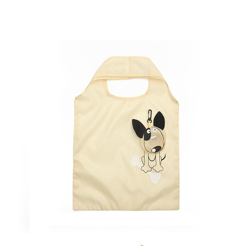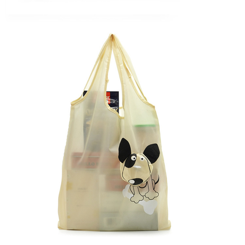 This foldable shopping bag is made of polyester. It looks like a little dog. It can be folded into the small bag. Logo can be imprinted on shopping bag.