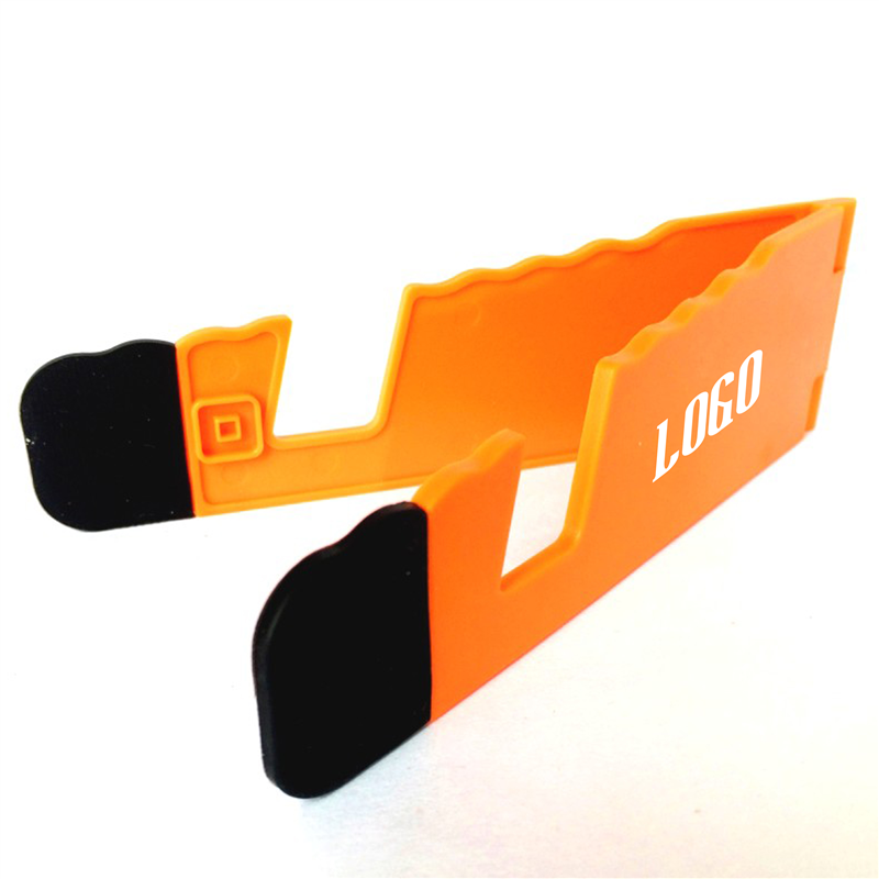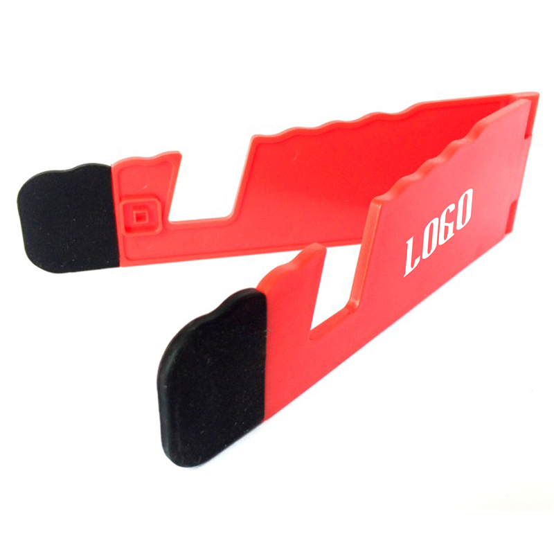 This phone holder is made of plastic, it can hold the phone on it easily. It can stand on the table or other areas. Logo can be imprinted on it.