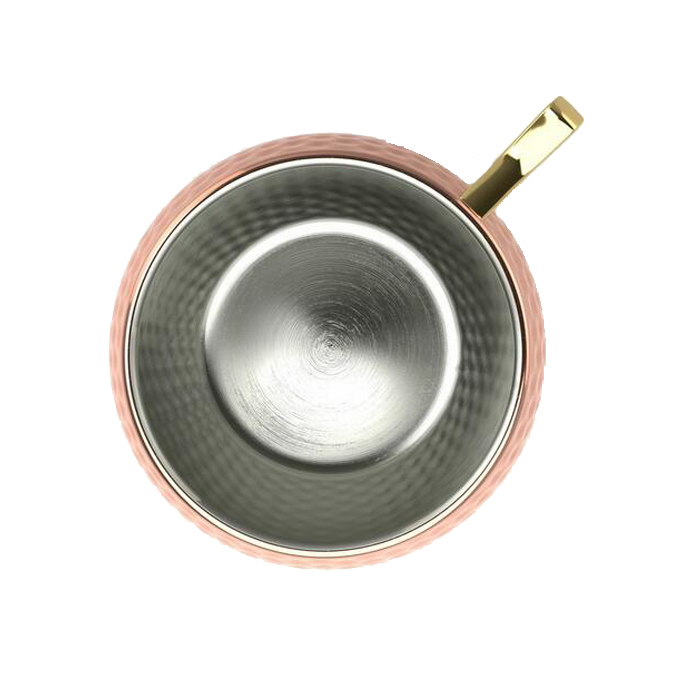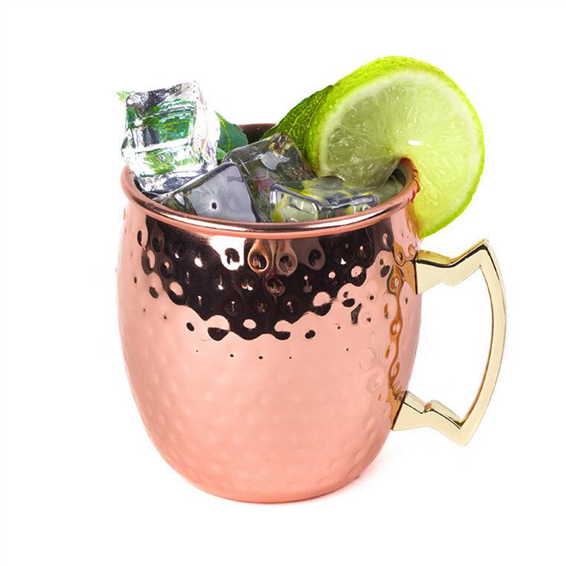 This is a copper plated moscow cup, and it is made of Stainless steel 304. The capacity is 16oz, great for your drinking. Laser engraved is acceptable.