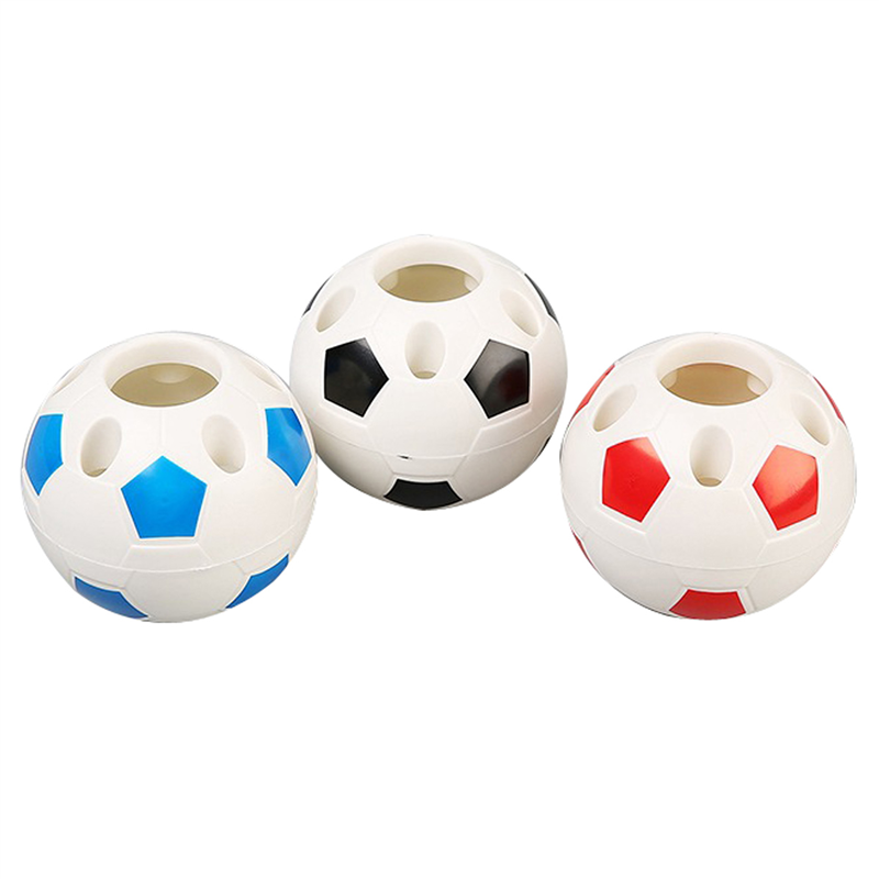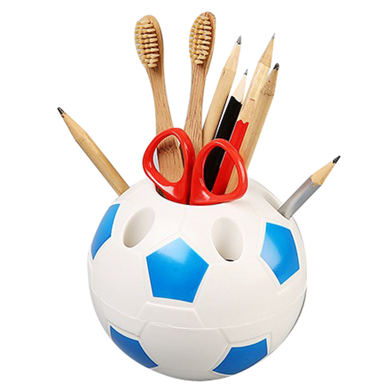 This brush pot is made of plastic, it looks like a football. You can put your pens in small holes. There is also a big hole. Here are three colors for you to choose. Logo can be imprinted on it.
