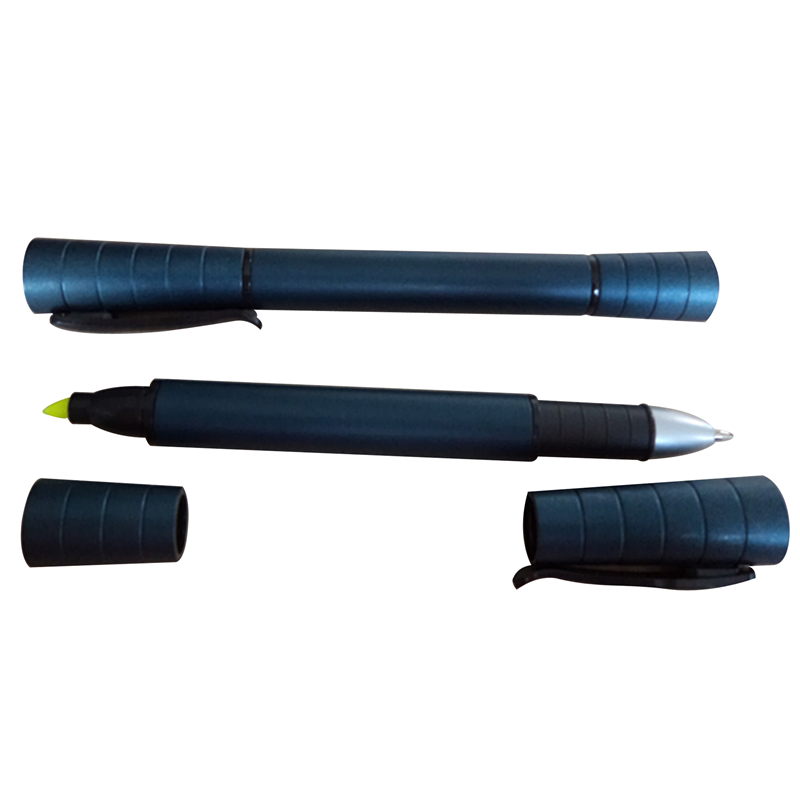 This pen has two nibs, one side is the highlighter and another is rollerball pen. You can use two sides to write. Logo can be imprinted on the pen.