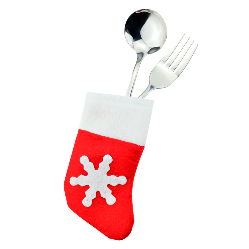 The gift sock is made of non-woven fabric. People can put the knife and fock, or small gifts in it. This is suibtable for Christmas Day.