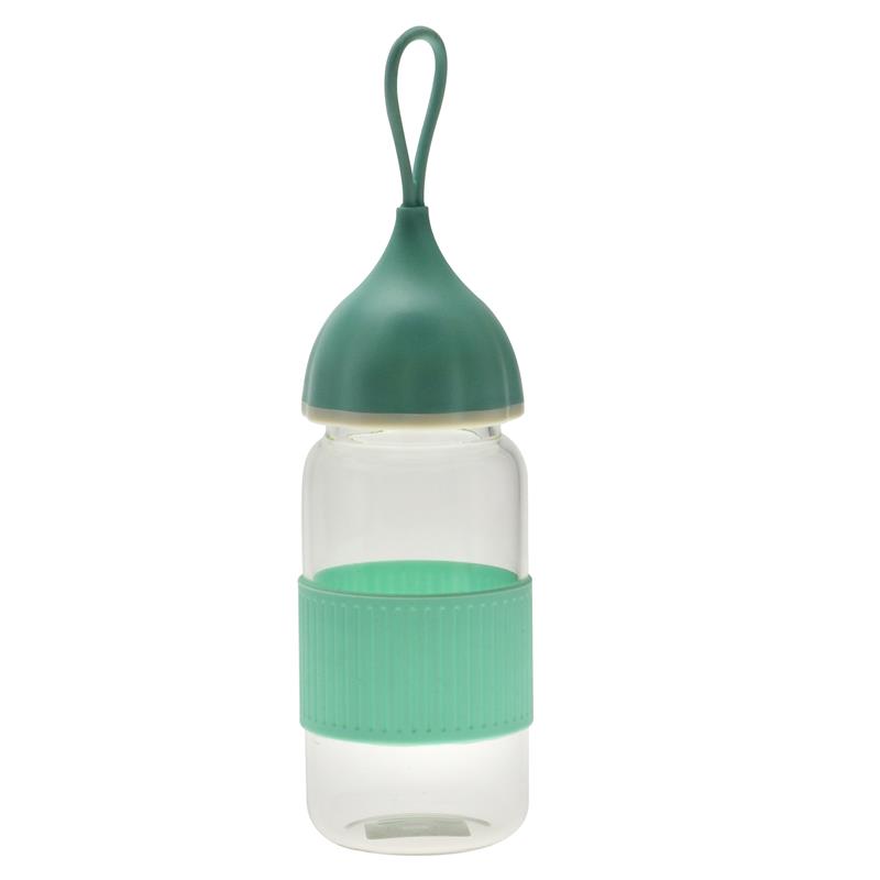This glass water bottle is 2.6" in diameter allowing for easy drinking, ice cube compatibility and easy cleaning by bottle brush or dishwasher. The lid and seal are also dishwasher safe. It is made of eco-friendly glass, which is a non-toxic, BPA free, and a reusable alternative to plastic bottles. It is great for everyday usage with water, smoothies, juice and even mixed drinks. Logo can be imprinted on it.