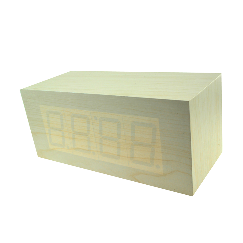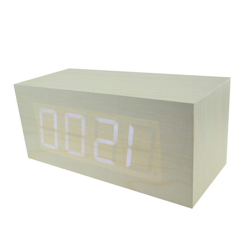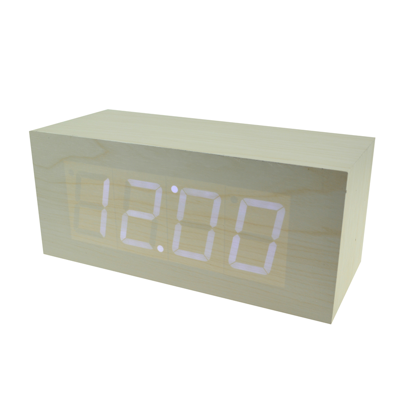 The LED digital alarm clock made of wood. It contains calendar and voice control. Voice control function can be controlled by switch. Time,date and temperature displayed can be shift automatically. After backup battery is put inside the clock,the clock will be still working when powered off . The bulk products are not including batteries. Listed prices are for red LED numbers. Those numbers could be green, blue and white, and prices are different for each color of numbers. Logo could be printed above or below the numbers.