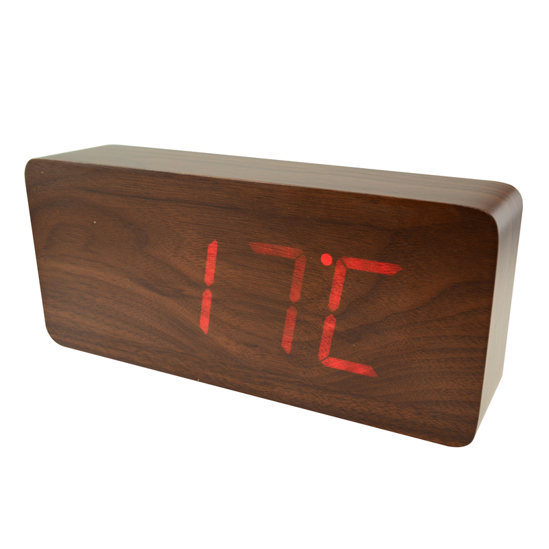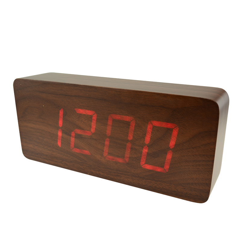 The LED digital alarm clock made of wood.It contains calendar and voice control. Voice control function an be controlled by switch;Time,date and temperature displayed can be shift automatically.After backup battery is put inside,the clock will be still working when powered off.The bulk products are not including battery.Listed prices are for red numbers.Those numbers could be green,blue and white,and prices are different for each color of numbers.Logo could be printed above or below the numbers.