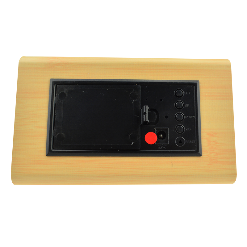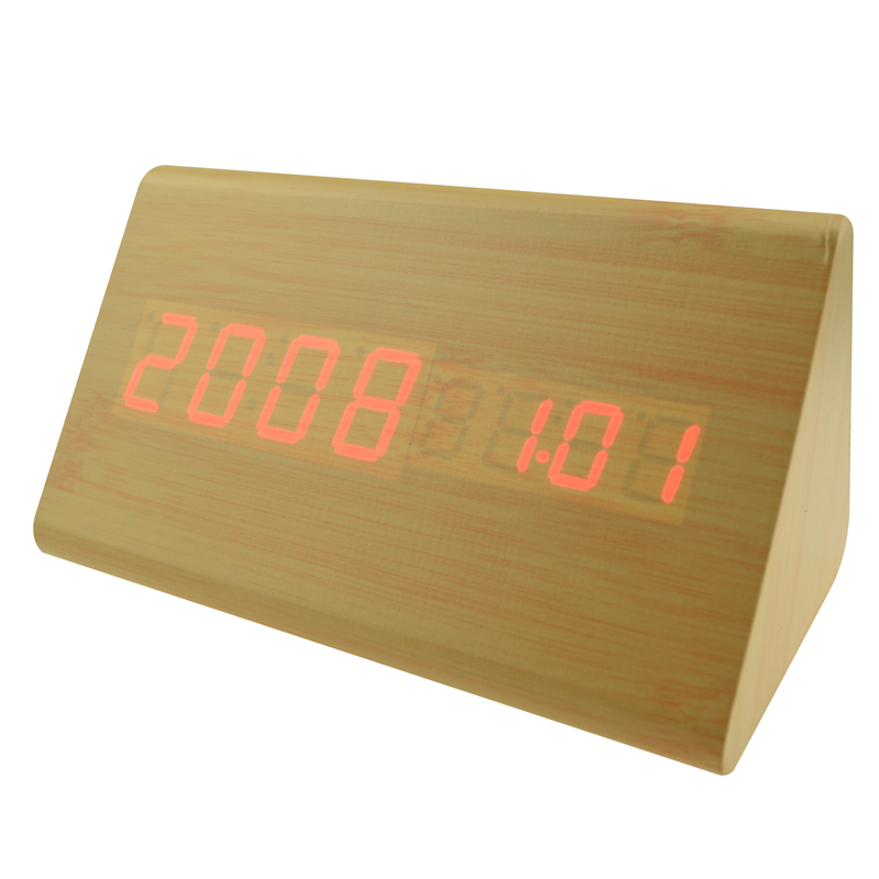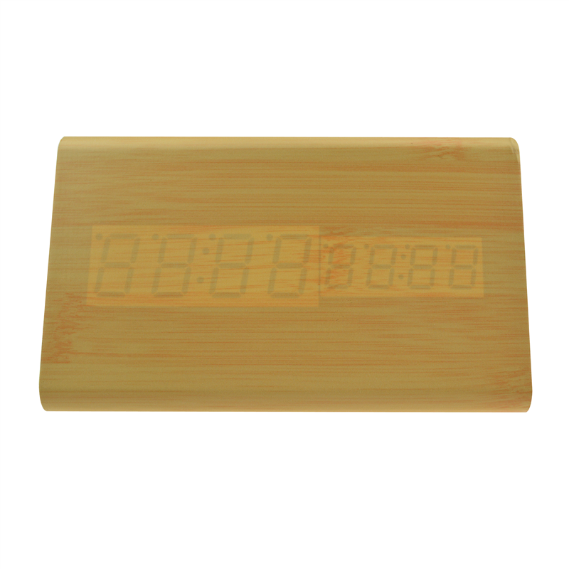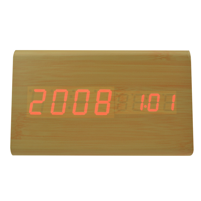 The LED digital alarm clock made of wood.It contains calendar and voice control.Voice control function can be controlled by switch.Time and temperature displayed at the same time.Double screen displayed, After backup battery is put inside the clock will be still working when powered off.The bulk products are not including battery.Listed prices are for red LED number.Those numbers could be green,blue and white,and prices are different for each color of numbers.Logo could be printed above or below the numbers.