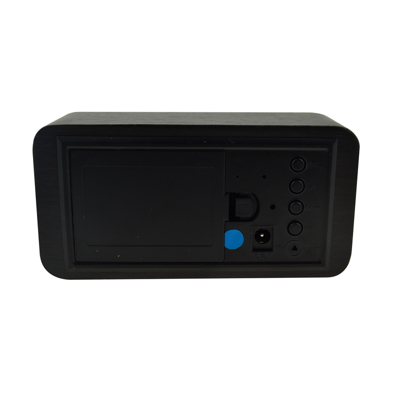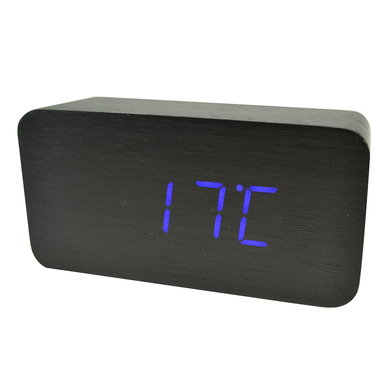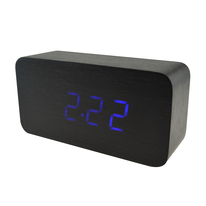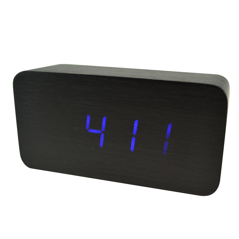 The LED digital alarm clock made of wood.It contains calendar and voice control.Voice control function can be controlled by switch.Time,date and temperature displayed can be shift automatically.After backup battery is put inside, the clock will be still working when powered off.The bulk products are not including battery.Listed prices are for red LED numbers.Those numbers could be green,blue and white,and prices are different for each color of numbers.Logo could be printed above or below the numbers.