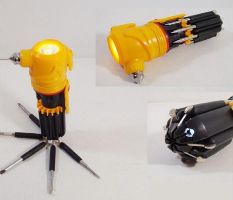 The screwdrivers made of stainless steel and ABS, can be used in the car for any emergency.such as break the window or cut off the safety belt.It also has flashlight function, can be used in darkness.