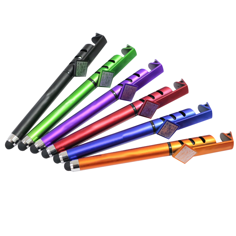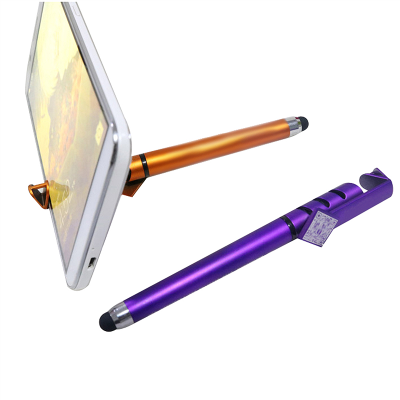 This 3 in 1 multi-functional pen is made of ABS and conductive material. It can be used as writing instrument, mobile phone holder or screen touching pen. Really convenient to use this multi-functional pen everywhere. Two-bar-codes or customized logos can be imprinted on it. It can be a role of publicity.