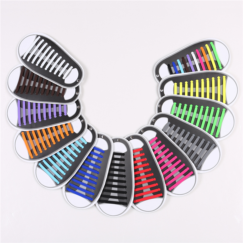 This shoelace is made of flexible silicone, which can replace common nylon laces. It won't get dirty and clean. One set including 16 pieces of shoelaces, which have different sizes, from 1.6inch to 2.8inch. There are many color options for choosing. This newest colorful and creative design makes shoelaces fashionable. If you replace common shoelaces with silicone ones, it will be more convenient when you are wearing shoe. Customized logos can be imprinted.