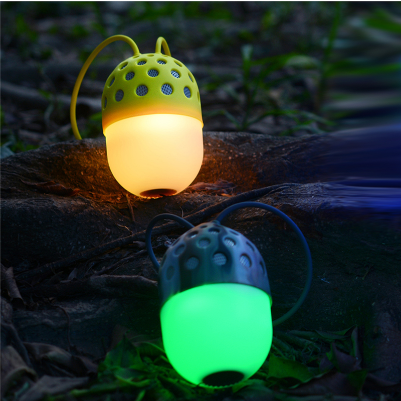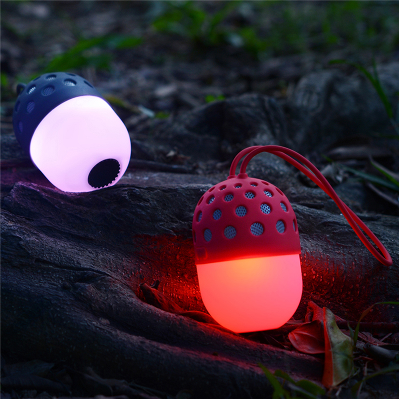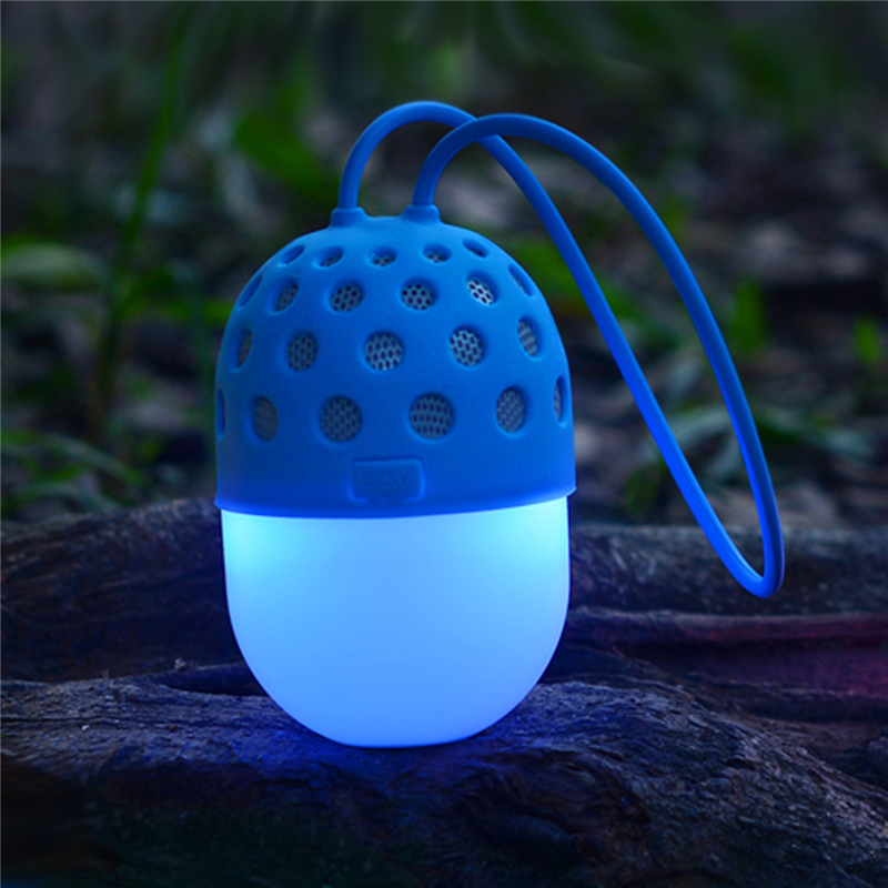 This unique design pill shape bluetooth speaker is made of silicone material, with LED inside that appropriate for camp and its lanyard makes it easy take, such as hanging on bags or bikes.