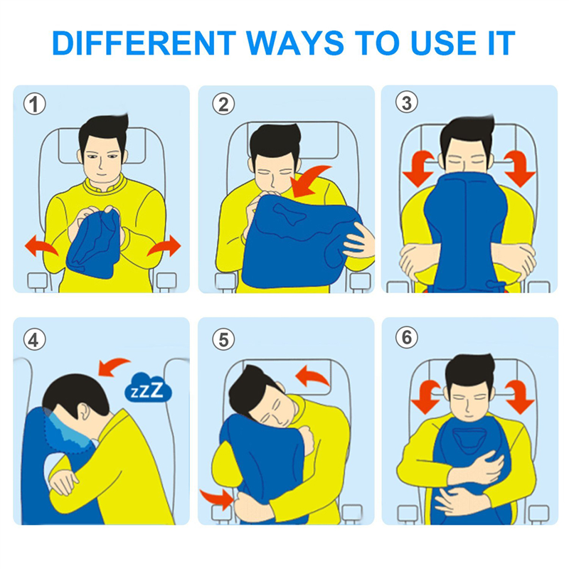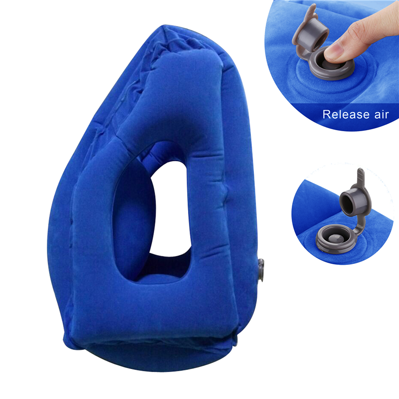 Special design that can hold your head and body in better ergonomic position, help you away from stiff neck, sore shoulder. PVC flocking material, ultra-breathable fabric without harmful material, soft and comfortable, help you keeping the sleep quality. Easily inflate and deflate, light and portable, suitable taken for airplanes, business train, office napping and camping etc.