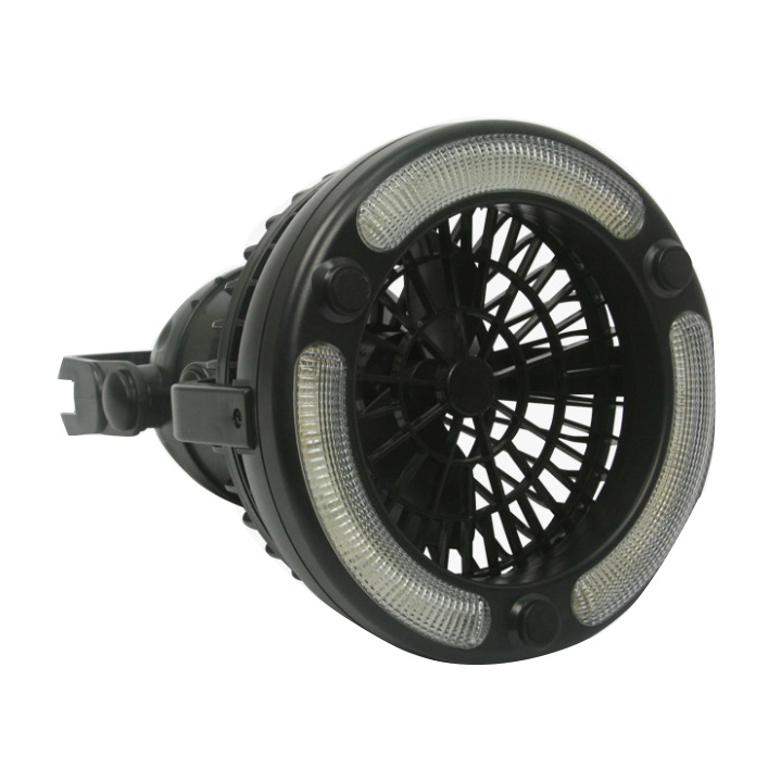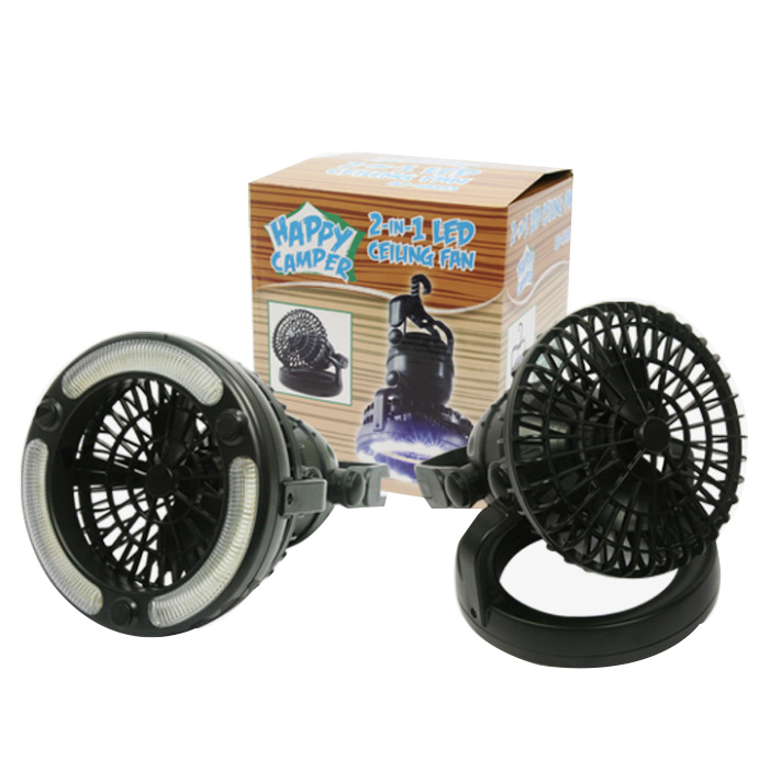 The 2 1 in tent light and fan is made of plastic, it is very convenient when you are at outside for camping. It's a very good product for promotion.