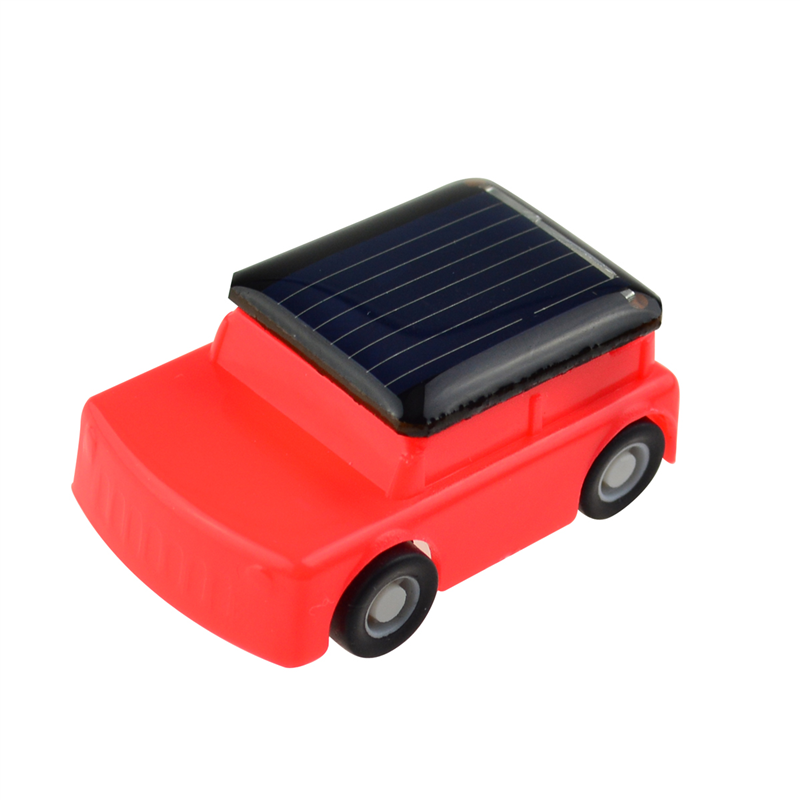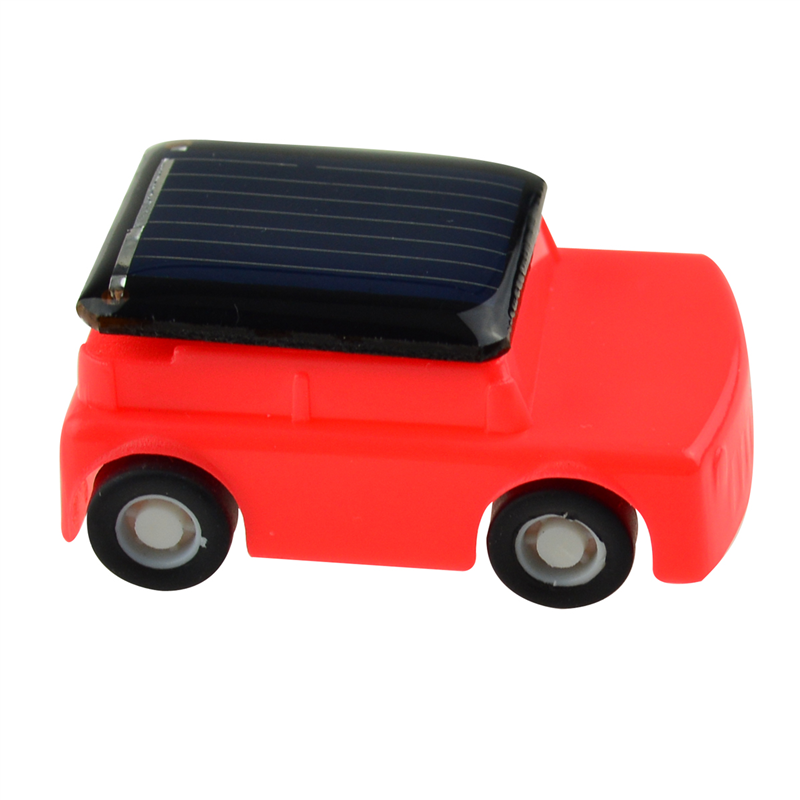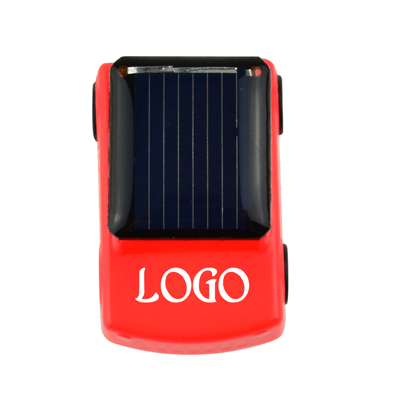 This Solar Toy Car is made of plastic. It doesn't need batteries to run in the sun. The logo can be printed on it.