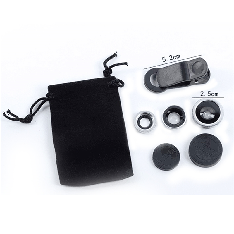 3 In One Phone Camera Lens Design. You can get the 180 degree fisheyes lens, 10X Macro Lens, 0.4X wide angle lens in one cell phone lens. With them on phones, you will get the high definition photos with wide, close and funny fisheyes angle.