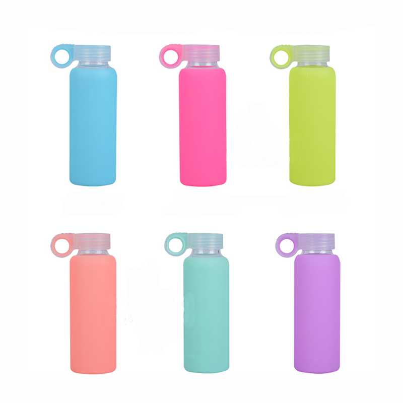 This is a silicone sleeve borosilicate glass bottle, BPA free. The capacity is 300ml, logo imprint is acceptable.