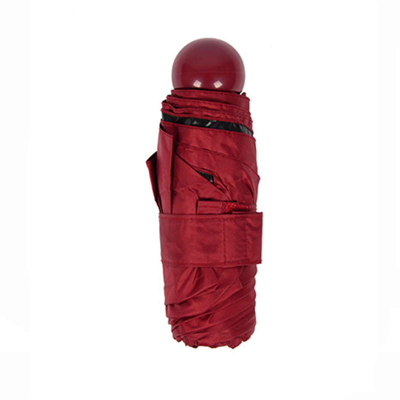 This is a manual open 5 folds capsule shaped mini umbrella, its material is 190T pongee. It has light weight and small size, which is very easy to carry and can be used on rainy and sunny days.