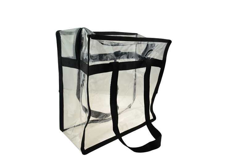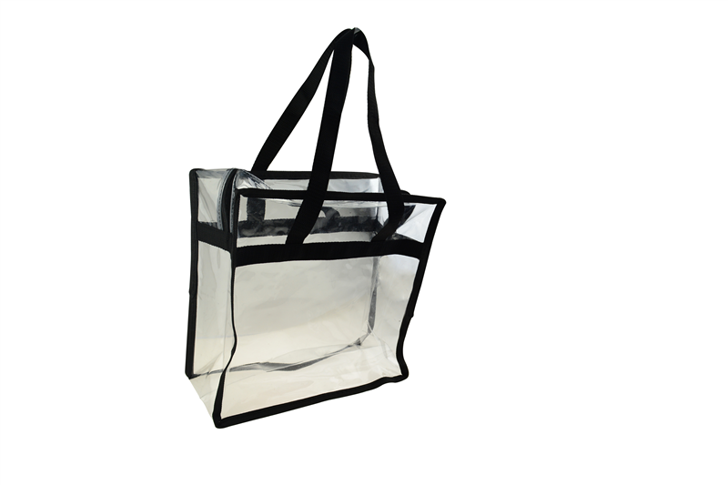 This clear tote bag is made of crystal clear PVC material with black shoulder straps. Its large capacity is perfect for travelling or doing sport. Customized logo imprint is available.