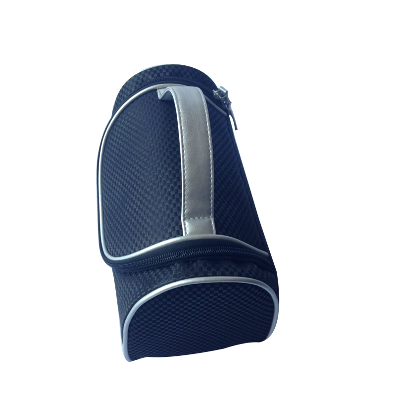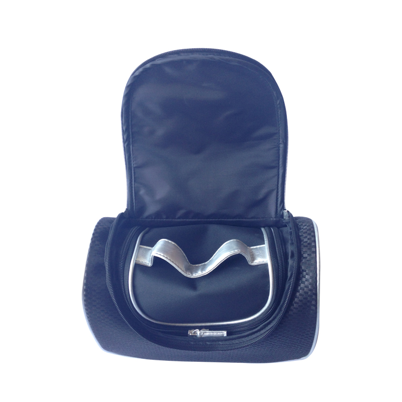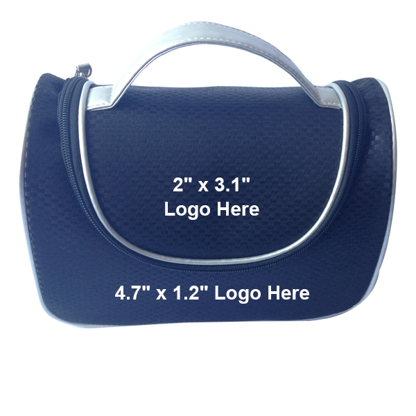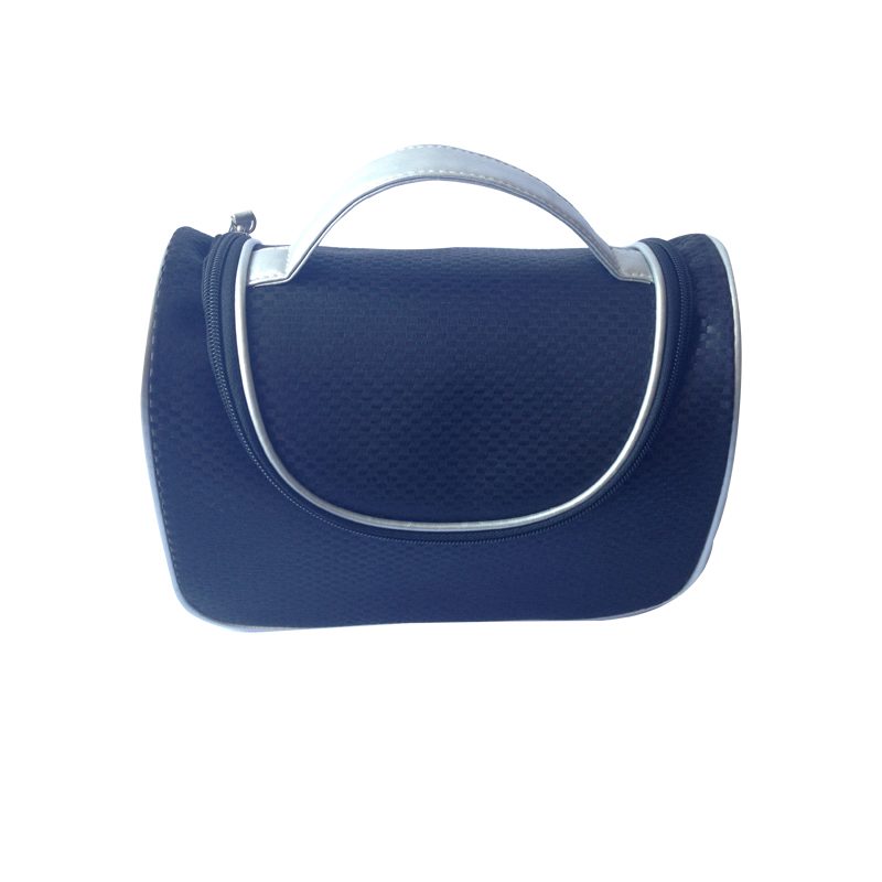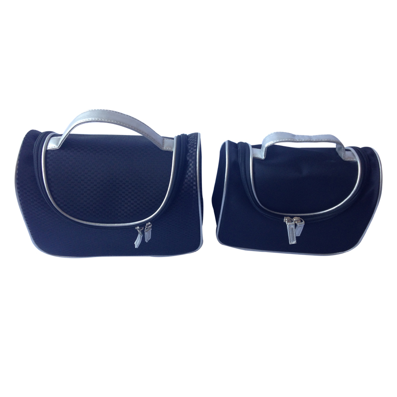 This cosmetic case bag set is made of polyester. You can put your cosmetics in it when you in travel. When you don't use it, you can put the small cosmetic bag in the big one so that it saves space. The logo can be customized.