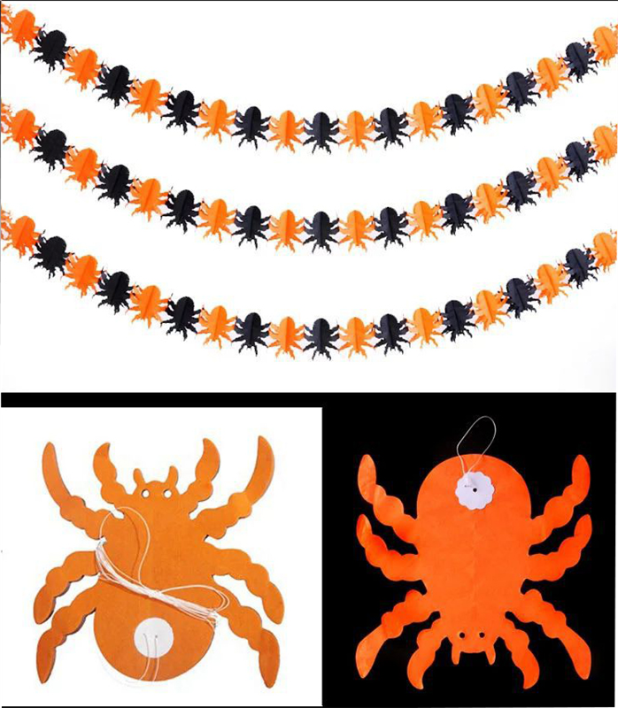 Halloween Spider Garland is made of paper. It is 118" long. This is easy to transport and fast delivery.