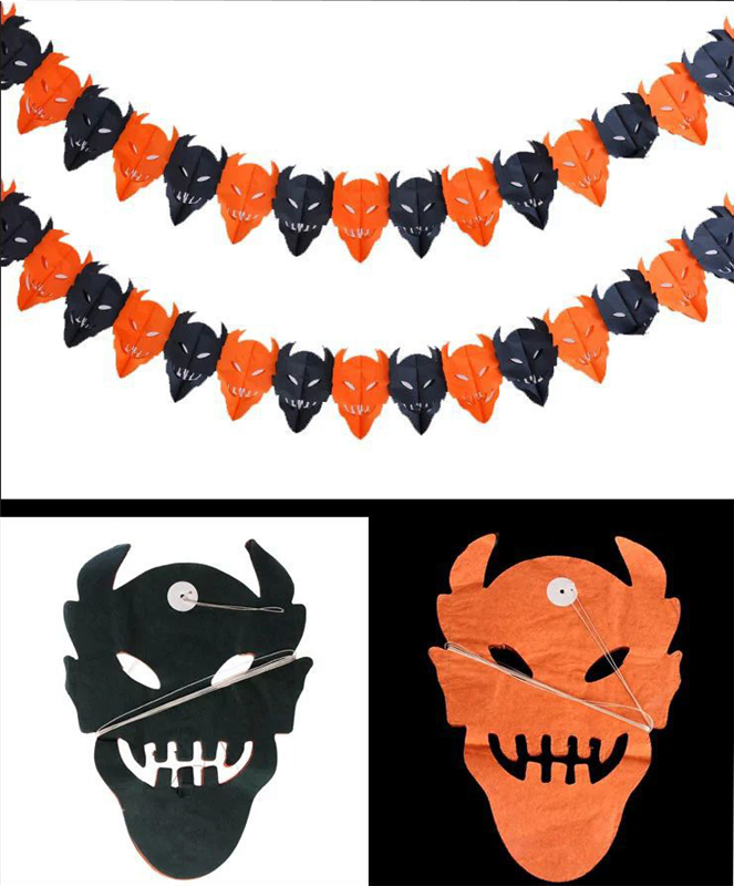 Halloween Devil Garland is made of paper. It is 118" long. We can buy them to aad the atmosphere of the festival.