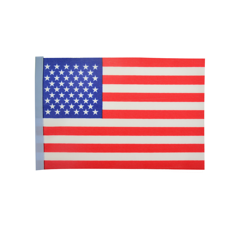 Hand flag is made of 100% recyclable polyester and plastic stick. Great for parades, party, celebrations. Polyester flags are generally considered superior to cotton flags as they are lighter, reasonable price, stronger and fly better. The size of 8" X 12", 12" X 18" and customize size are available, the plastic stick can be changed to wooden stick, the full flag can be printed.