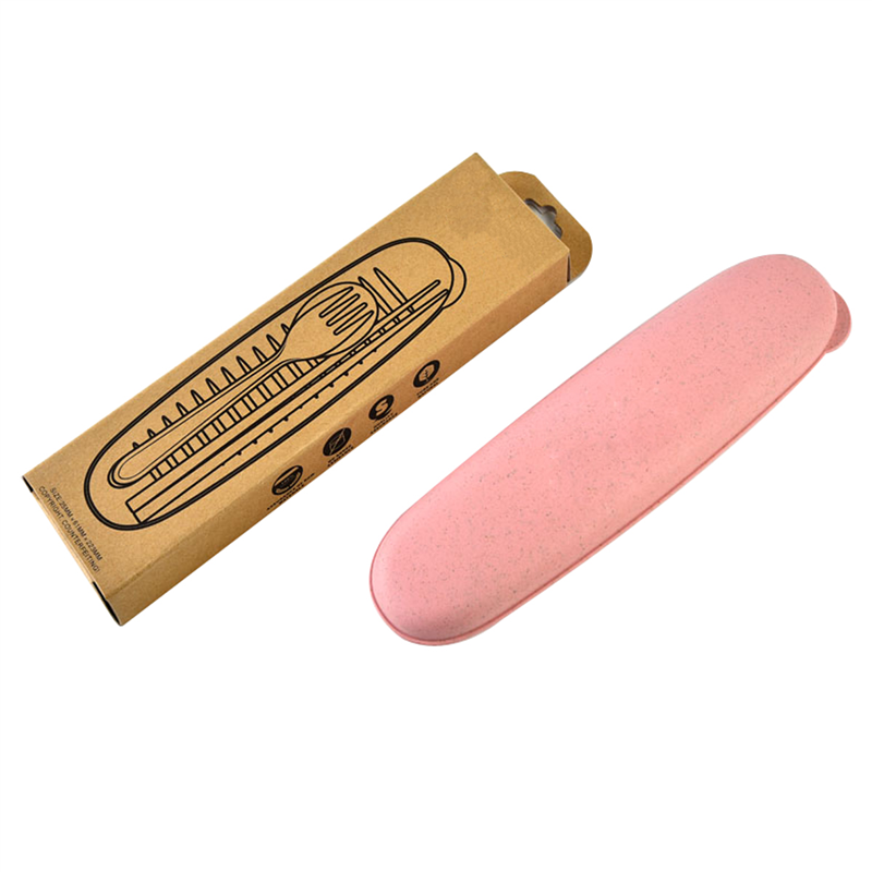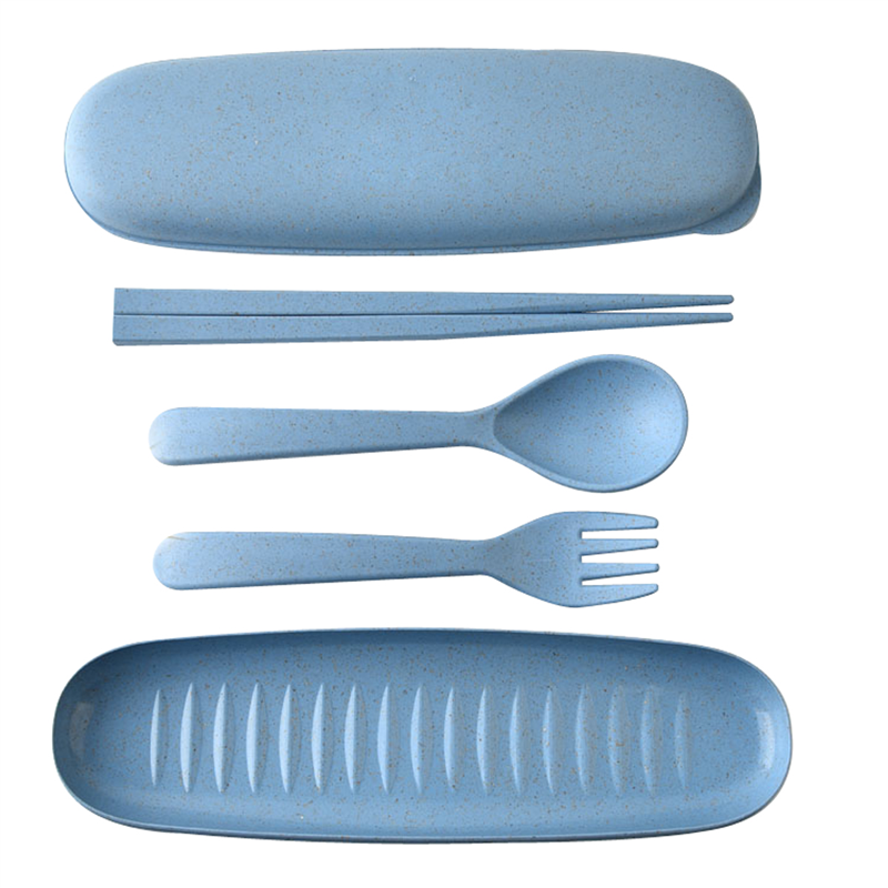 It includes one fork, one spoon and one pair chopsticks.Made from Eco-friendly material - Natural Wheat Straw; You can see the scraps of wheat straw scatter on the surface and even smile it.Totally renewable, degradable and food-safe, no heavy metal; Dishwasher, microwave, fridge and freezer safe.Your logo can be customized on the box.