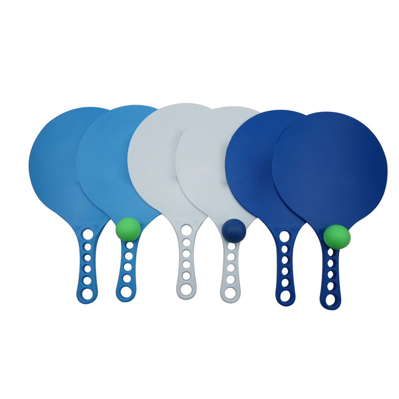 It is made of PP,including 2 paddles and a ball.Toss, catch and smash paddle balls in your backyard, at the pool or on the beach. Perfect for poolside and beachside plays. They're perfect for inventive water games.