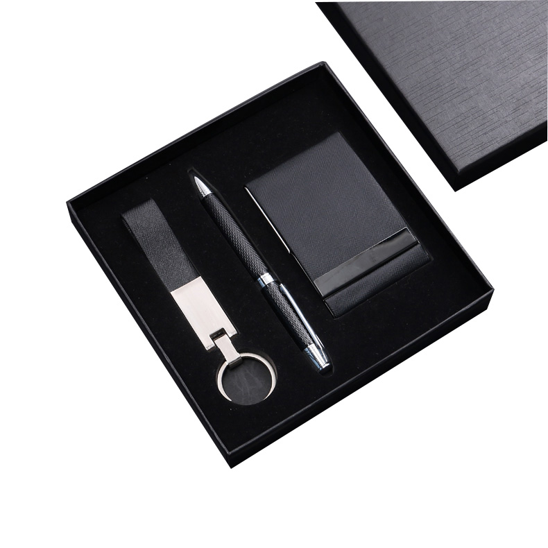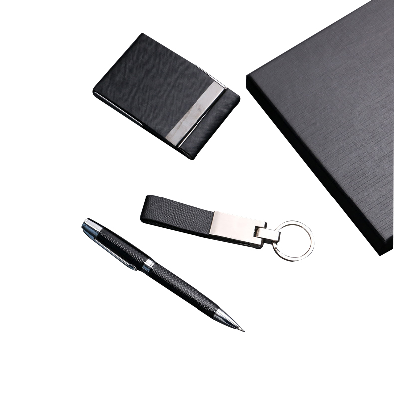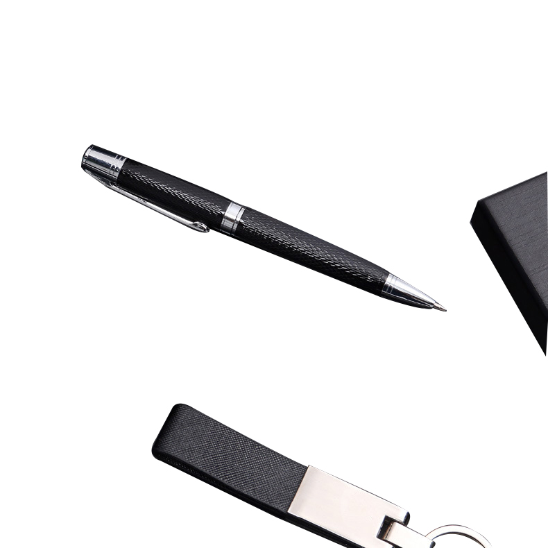 This car key buckle set is made of PU and metal, which contains ballpoint pen, car key buckle and cardcase. It looks very upscale and very suitable for business people. Logo is available.