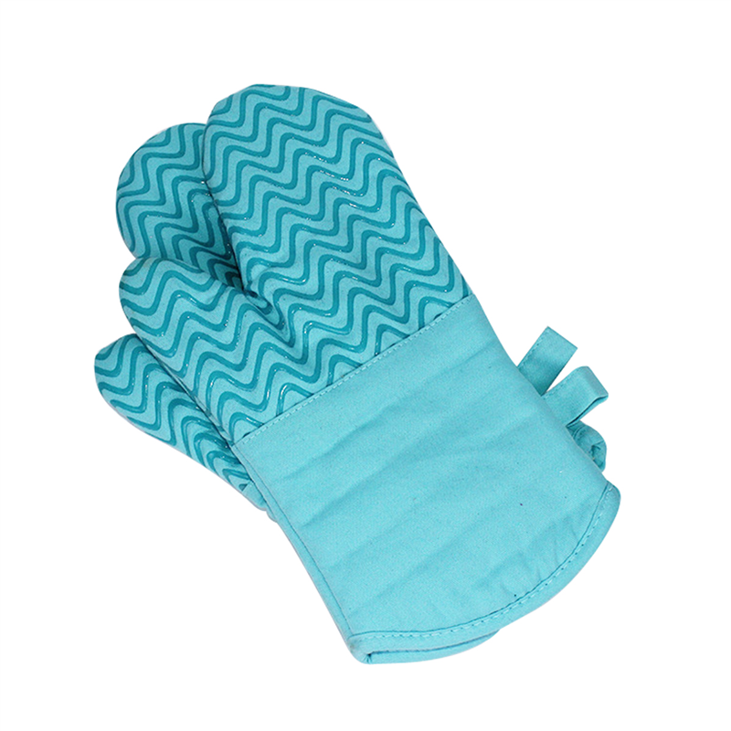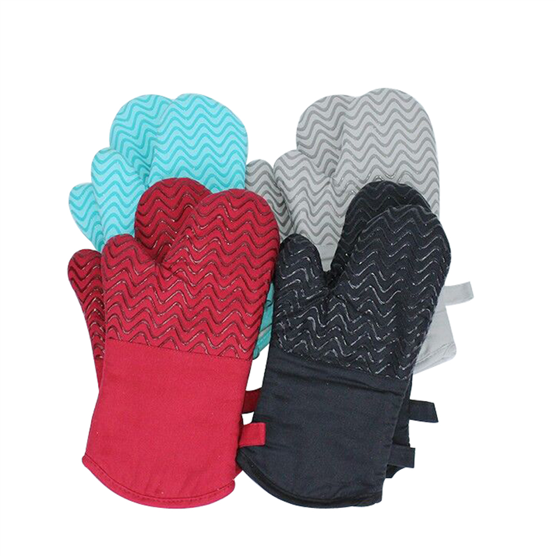 The oven mitt is made of silicon and cotton , it has four colors to choose : red , black , gary and blue ,