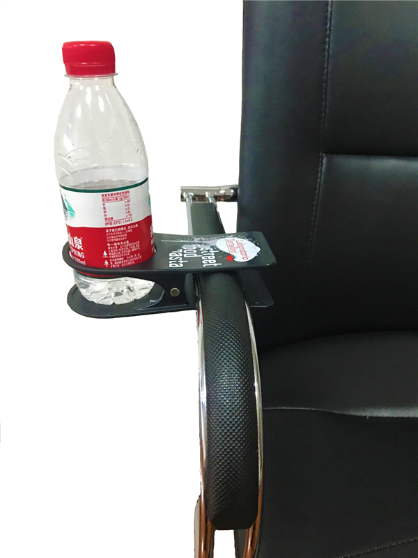 You can put your cup or water bottle into the clamp, it will help save space on your table. Logo can be customized.
