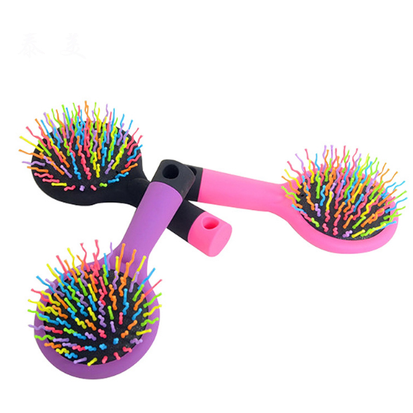 Rainbow Volume Anti-static Hair Curl Straight Massage Comb Brush Mirror
