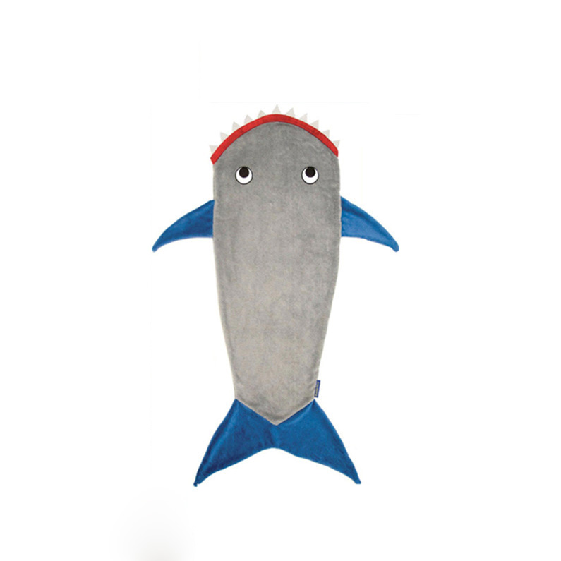 Children shark sleeping bag is made of flannel.The length is 56". It is very soft and comfortable for children to use after bathing. Your company logo or name can be customized.