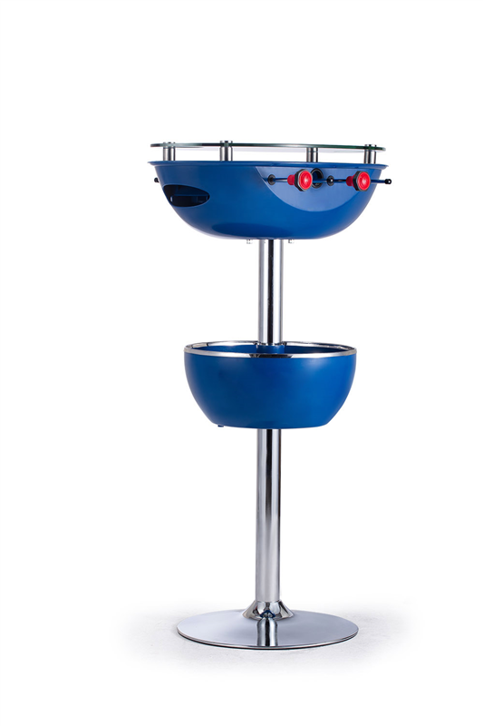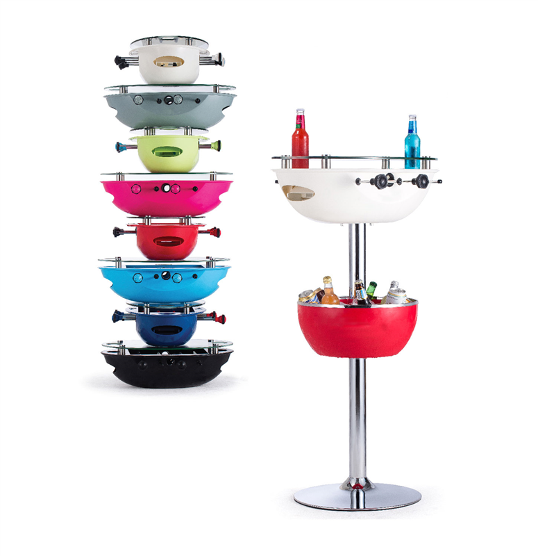 Icy table is made of Plastic bucket and football table top ,Chrome-Plated Iron post & base. You can use it have fun. You can put ice and drinks in the below bucket. You also can play games use the upper layer. Logo is available.