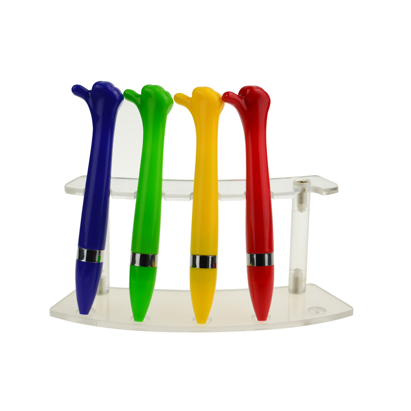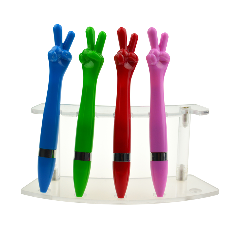 This finger shape ballpoint pen is made of ABS plastic, with different hand gestures that like thrums-up and victory . Really cute design can bring great fun for you, it is suitable for advertising with your customized logo printed on it. It is about 5.3 inches in length and 10.5 grams weight. Conventional colors are available such as red, pink, blue, green and yellow.